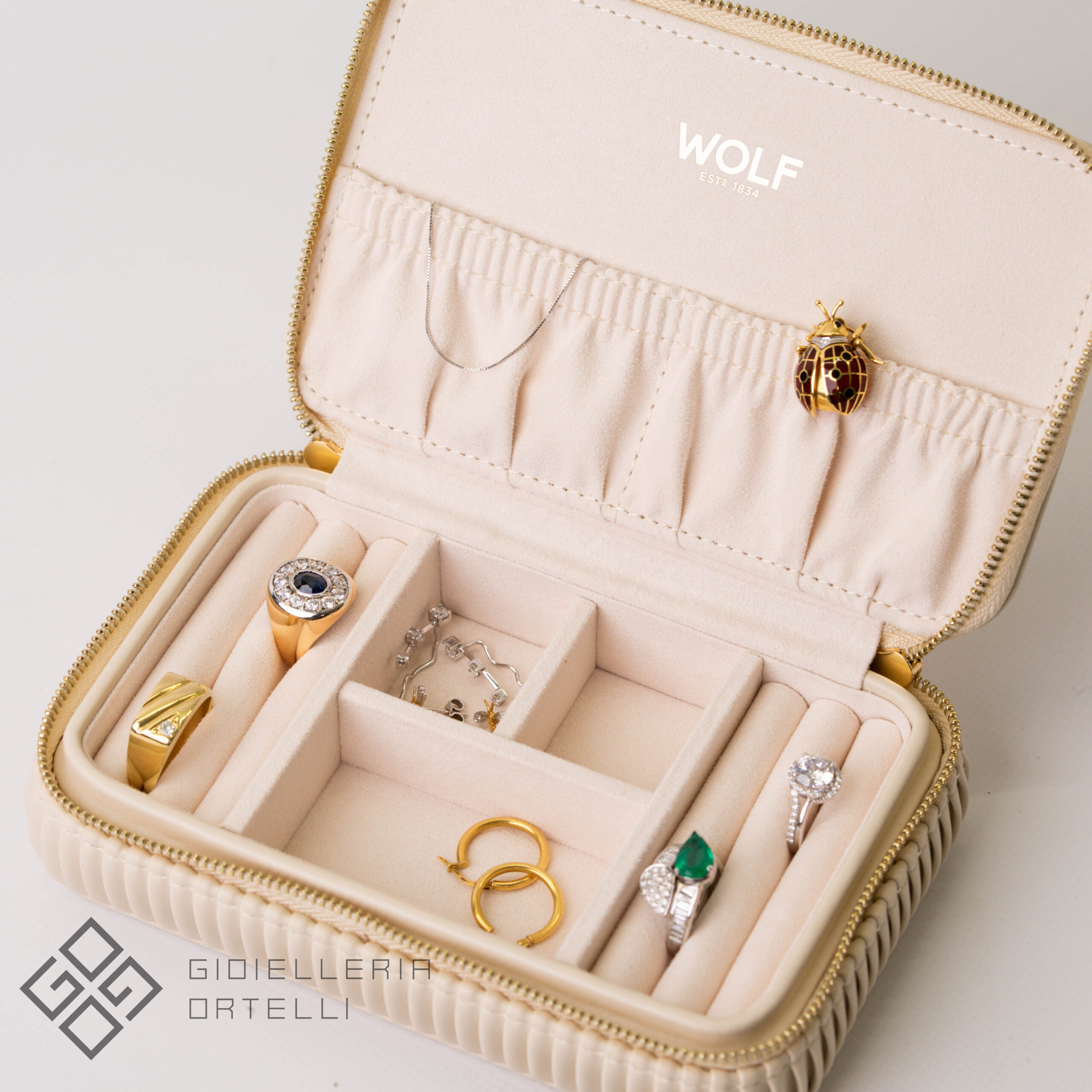 Il Portagioie Zip Bella incarna opulenza e sofisticatezza. È l’essenziale da viaggio perfetto per proteggere i tuoi gioielli più preziosi, unendo eleganza senza tempo e tecnologia di conservazione LusterLoc™ brevettata WOLF.