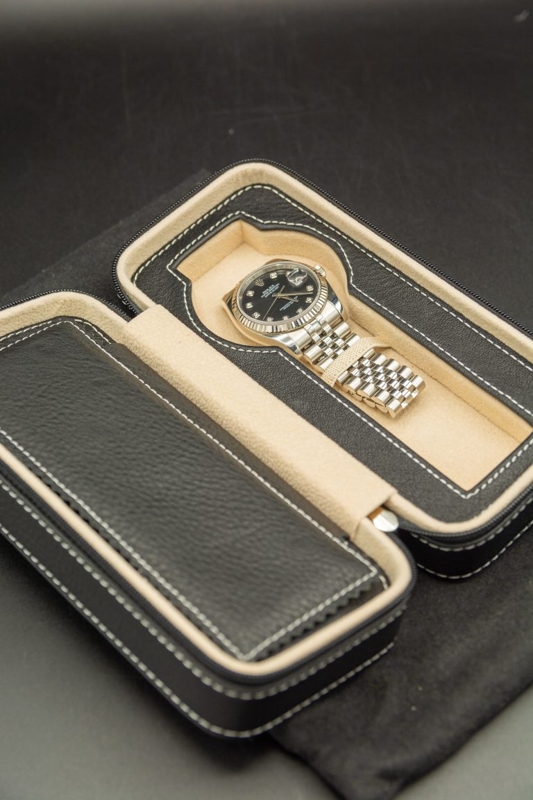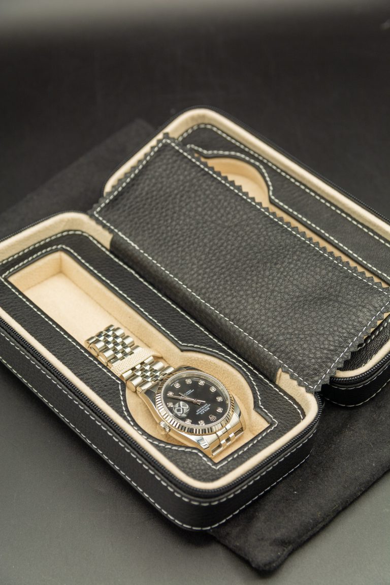 Mantieni i tuoi orologi ordinatamente organizzati e al sicuro durante il viaggio in questa custodia per orologi BillStone Traveller 2. Getta questa custodia per orologi nel tuo bagaglio senza preoccuparti che i tuoi orologi si danneggino.