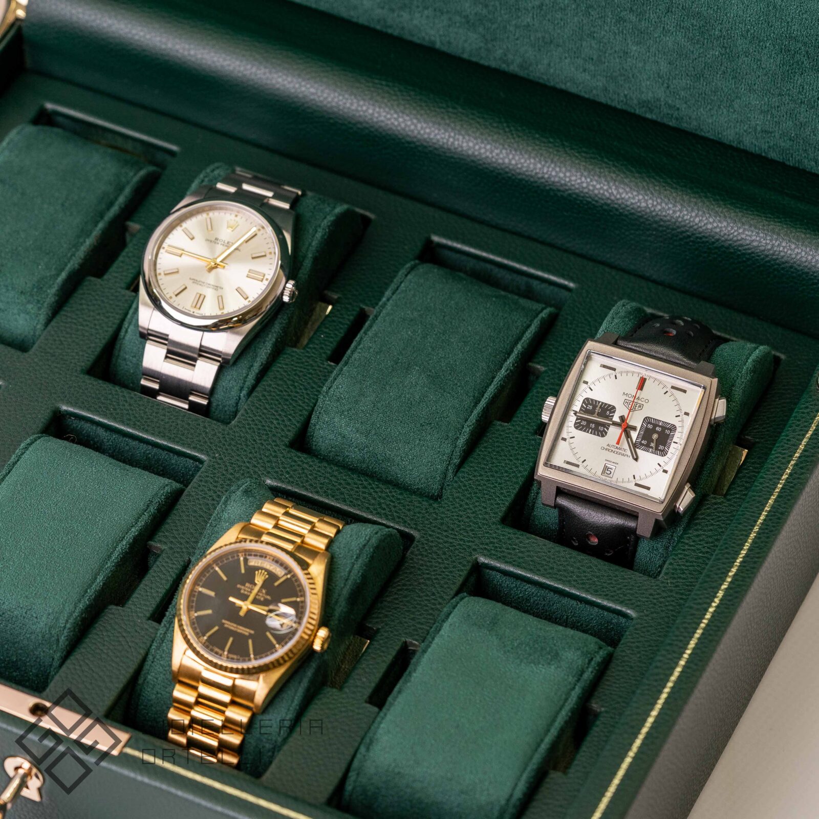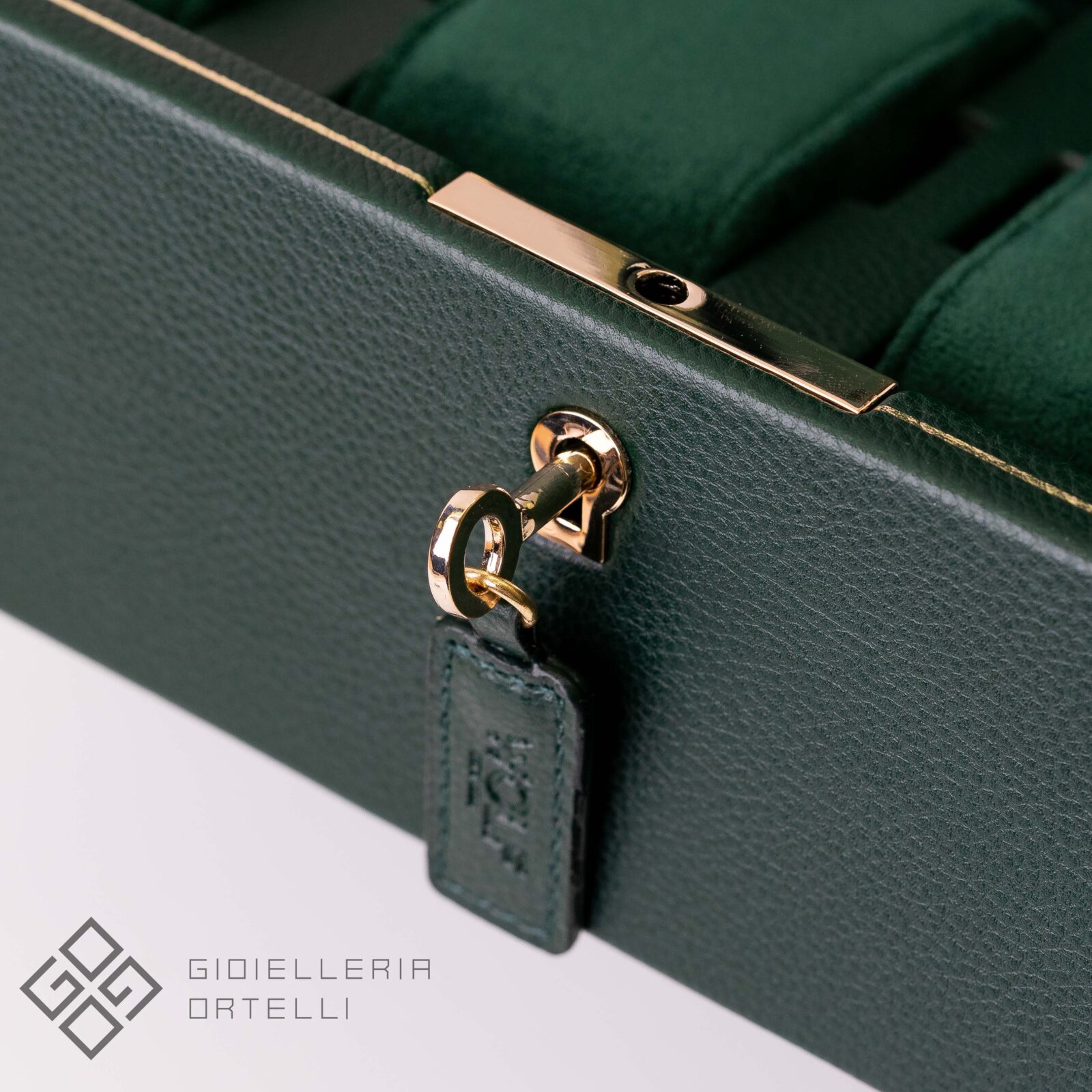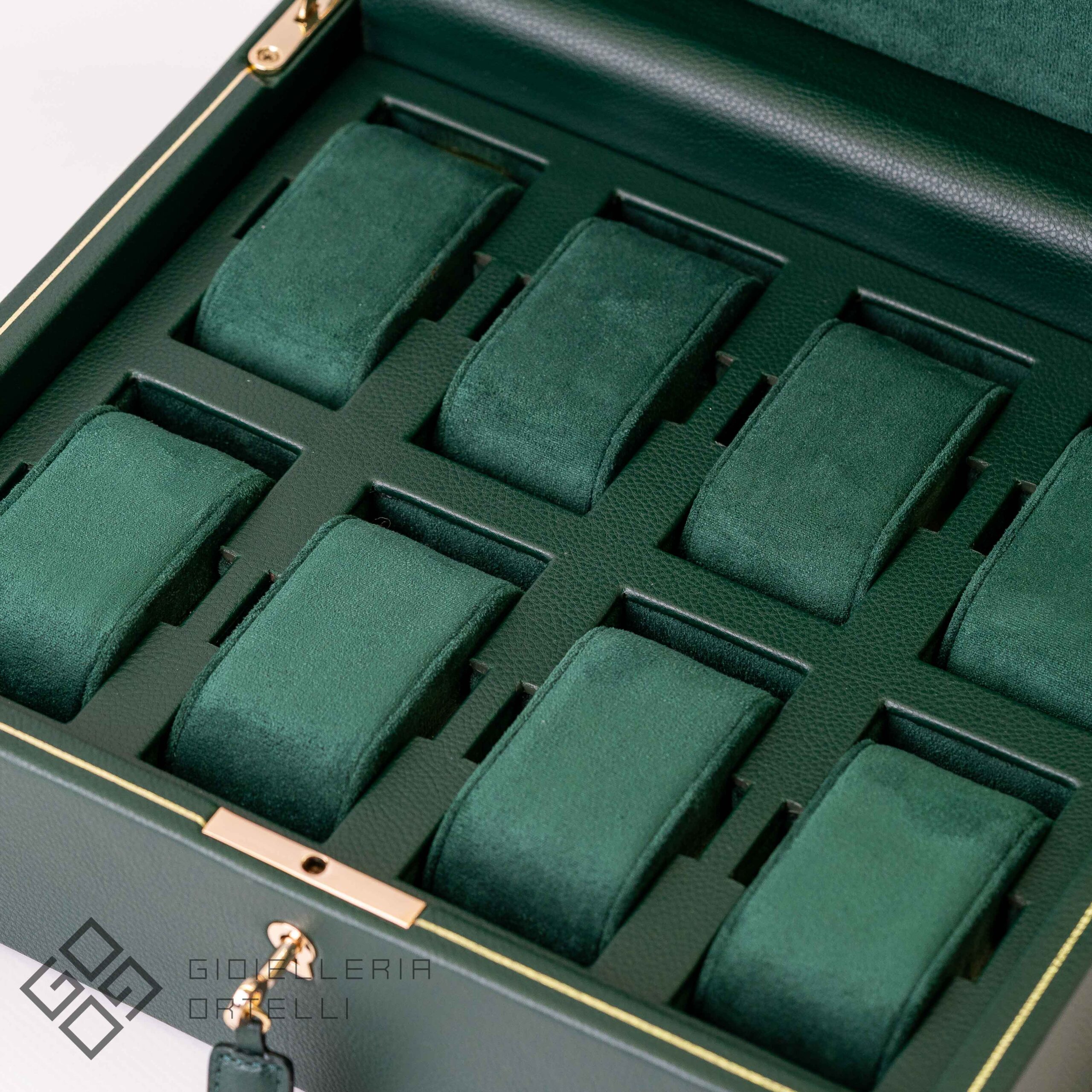 La Cassetta Porta Orologi 8 pezzi British Racing è l’accessorio di conservazione definitivo per il collezionista che necessita di spazio e sicurezza senza compromettere lo stile. Fa parte della celebre collezione British Racing, un omaggio all’eleganza sportiva delle corse automobilistiche.