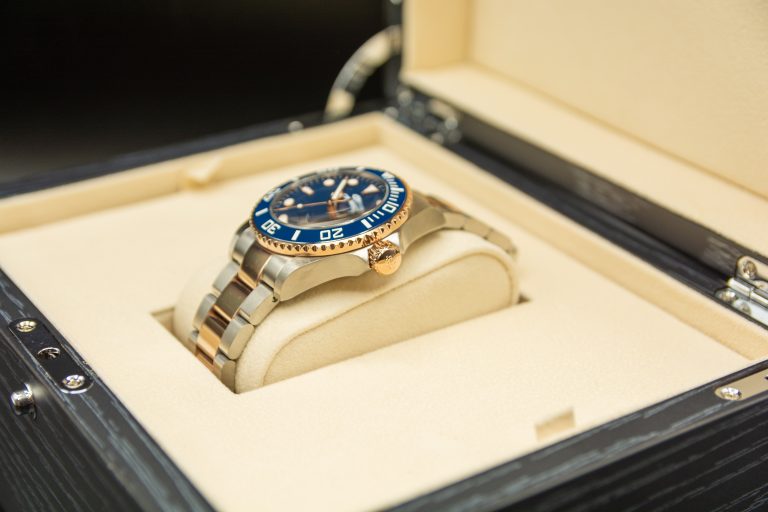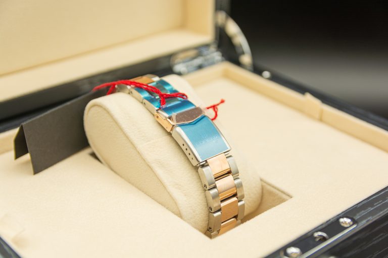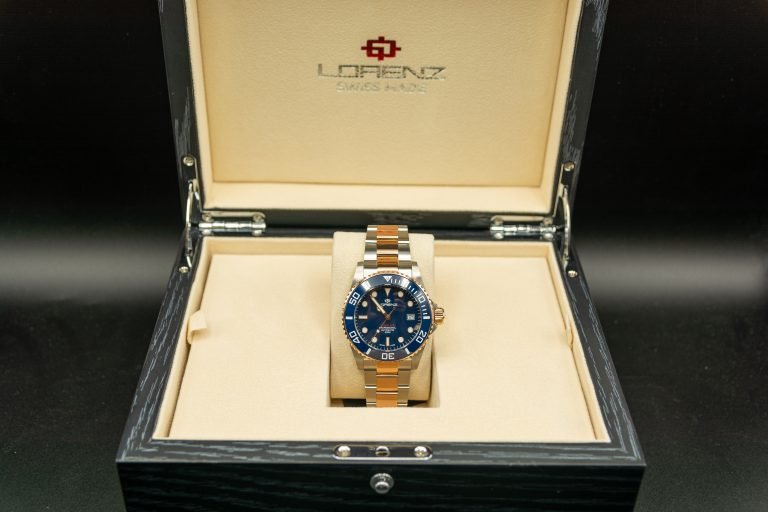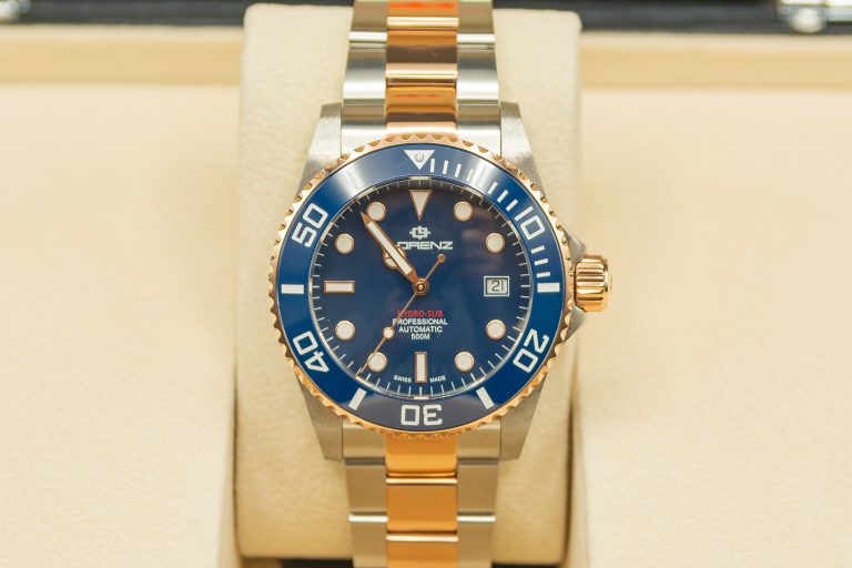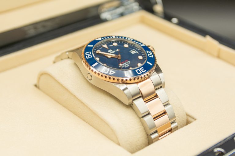 Orlogio da polso solo tempo cassa rotonda in acciaio bicolore diametro 42 mm. con fondello a vite e vetro zaffiro. Cinturino in acciaio e con chiusura sportiva di sicurezza solida. Movimento automatico STP1-11. Resistente all’acqua fino a 50 ATM.
