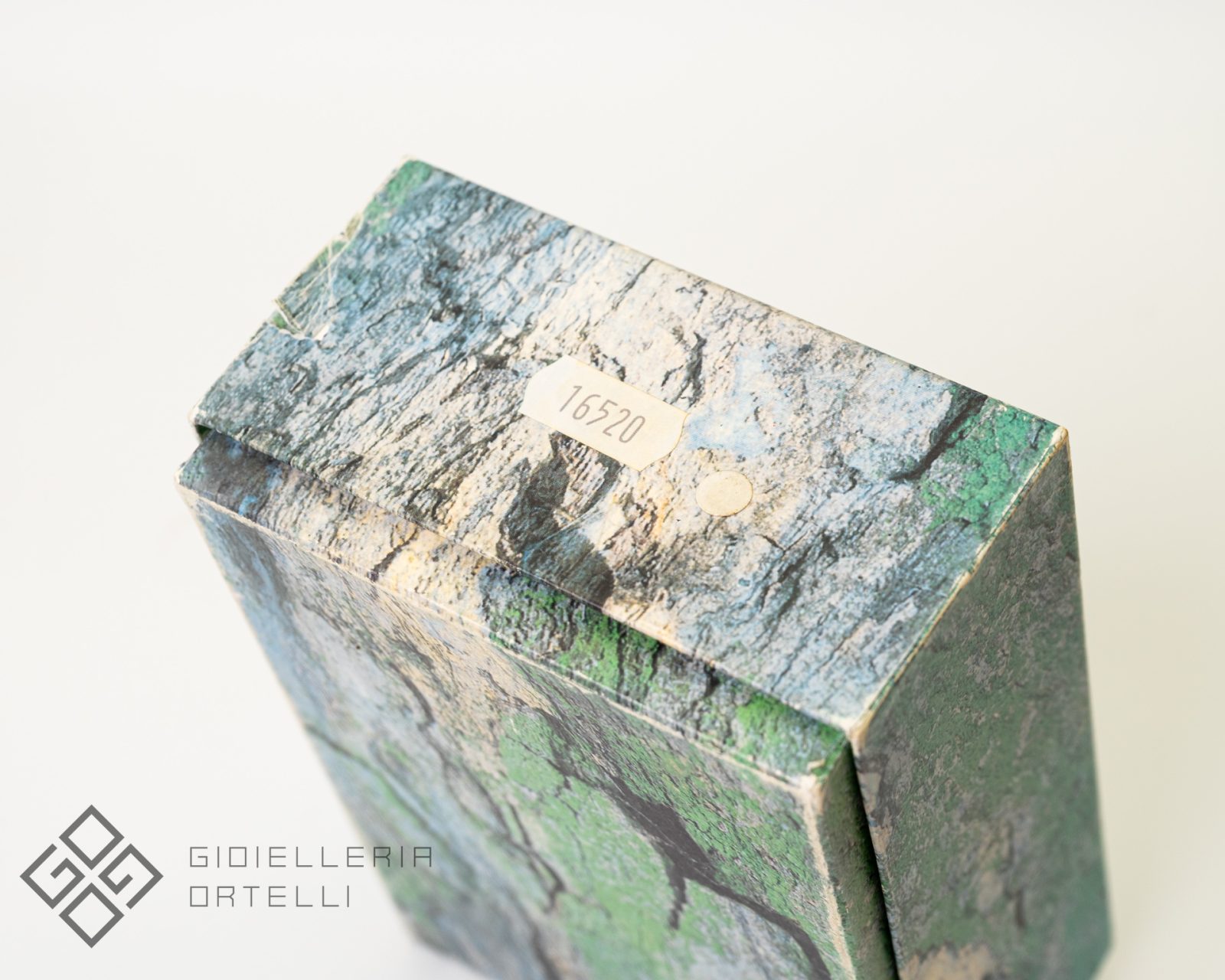 - 1970 (fine anni ’70) – Box (esterna) con cratere lunare – Box Lady (esterna) con coralli/cristallo – Box (esterna) con cartina verde, internamente in pelle con bordo oro